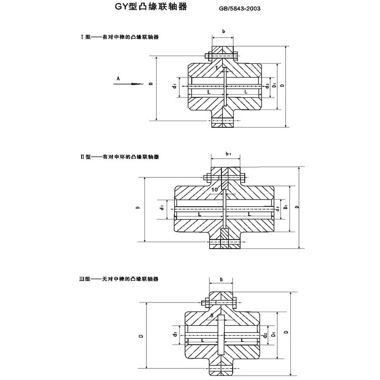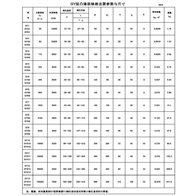 GY型凸缘联轴器属于“凸缘联轴器”一种型号,其结构简单,制造方便,成本较低,工作可靠,装拆、维护均较简便,传递转矩较大,能保证两轴具有较高的对中精度,一般常用于载荷平稳,传动精度要求较高的轴系传动。GY型凸缘联轴器不具备径向、轴向和角向补偿性能,使用时如果不能保证被联接两轴对中精度,将会降低联轴器的使用寿命、传动精度和传动效率,并引起振动和噪声。